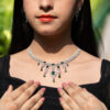 Enhance your look with this luxurious rhodium-plated American Diamond necklace set, featuring stunning royal blue stones and premium craftsmanship. Ideal for weddings, parties, and festive occasions. Elegant, durable, and skin-friendly.