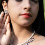Wearing jewellery is a way to express yourself without saying a word. Each piece speaks the language of elegance, confidence, and timeless beauty, capturing emotions that words can’t describe. And our jewellery Bring timeless elegance and modern sophistication together with this luxurious Pearl and Ruby Drop Necklace Set, beautifully handcrafted to make every occasion truly special. Designed with precision and passion, this elegant jewellery piece showcases a harmonious blend of shimmering American Diamonds, radiant ruby-red drops, and shining pearls, all finished with a stunning rhodium plating for a mirror-like shine and long-lasting brilliance. Each stone is handset with precision to ensure exceptional sparkle from every angle, while the rhodium plating enhances brilliance and provides lasting protection against tarnish. Graceful yet commanding, this jewellery piece raised your presence instantly — perfect for bridal ensembles, and grand celebrations.
